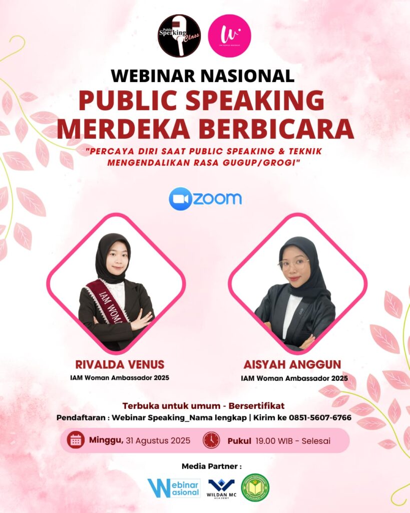 IAM Woman Ambassador berkolaborasi dengan Public Speaking Class Universitas Negeri Surabaya menyelenggarakan Webinar Nasional Public Speaking Merdeka Berbicara 2025